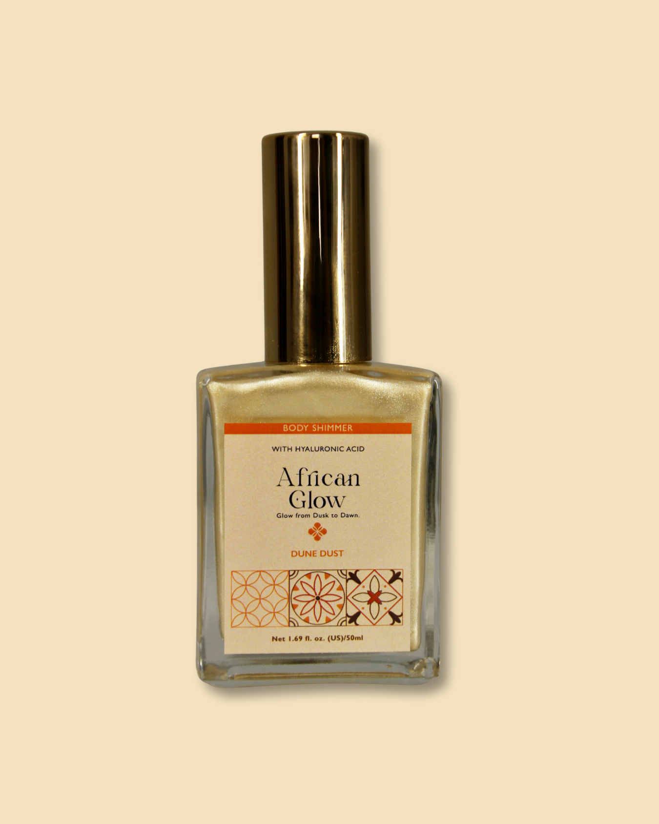 Evoke the warm, ethereal glow of the desert with our Dune Dust shade. Dune Dust captures the subtle golden hues of the African sands, leaving your skin with a delicate, sun-kissed radiance. Perfect for adding a touch of mystique to any occasion. This product is a water-based shimmer with Hyaluronic Acid.