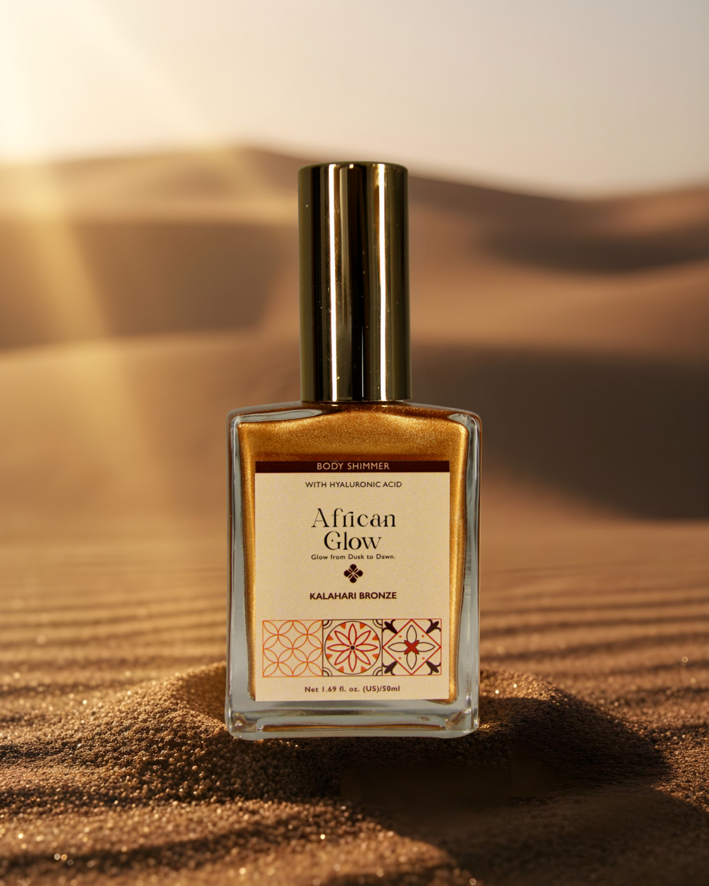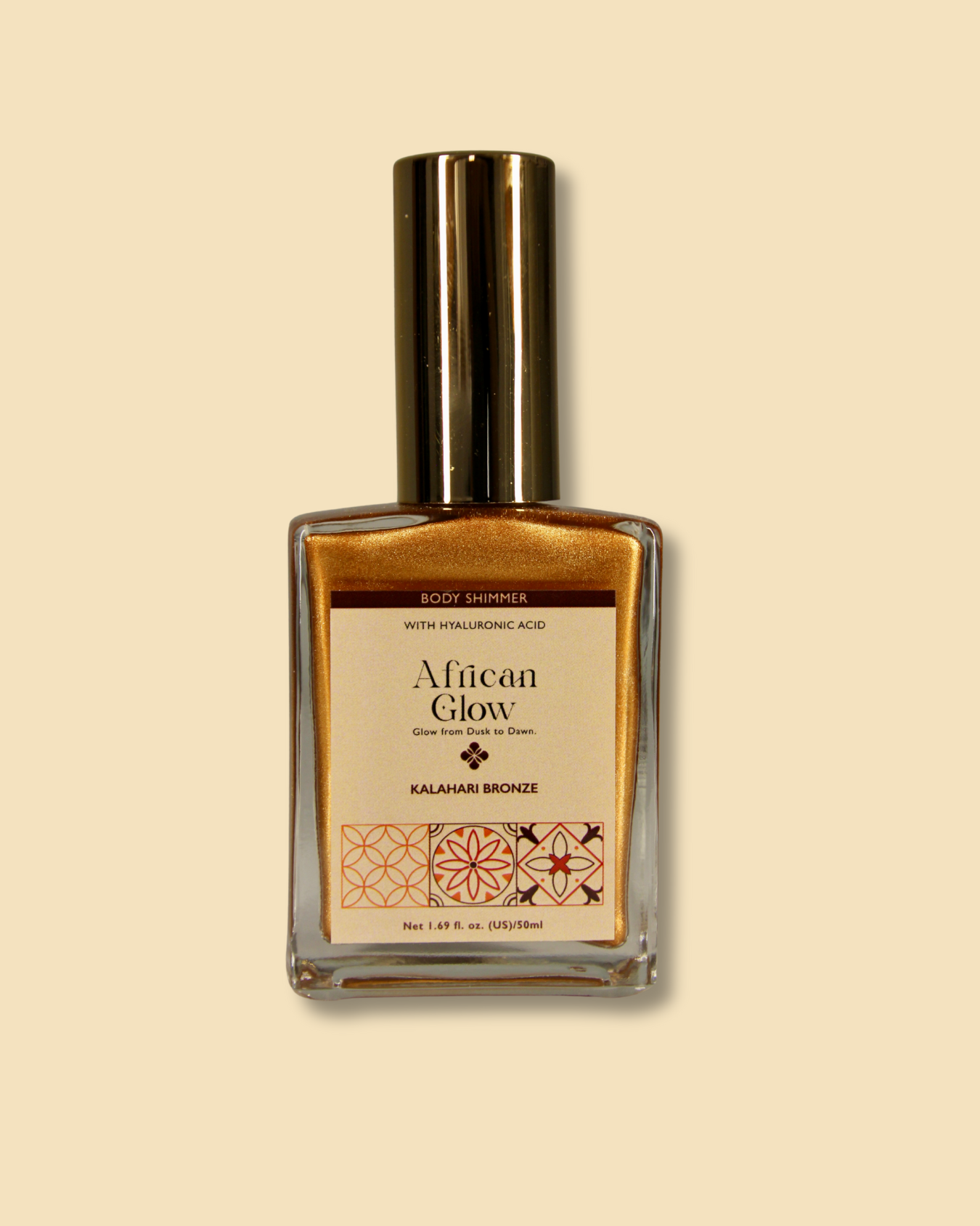 Embrace the sun-kissed allure of the Kalahari with our Bronze shade. Kalahari Bronze imparts a warm, bronze glow, capturing the essence of the African sunset. Perfect for achieving a deep, radiant shimmer that celebrates your natural beauty. This product is a water-based shimmer with Hyaluronic Acid.
